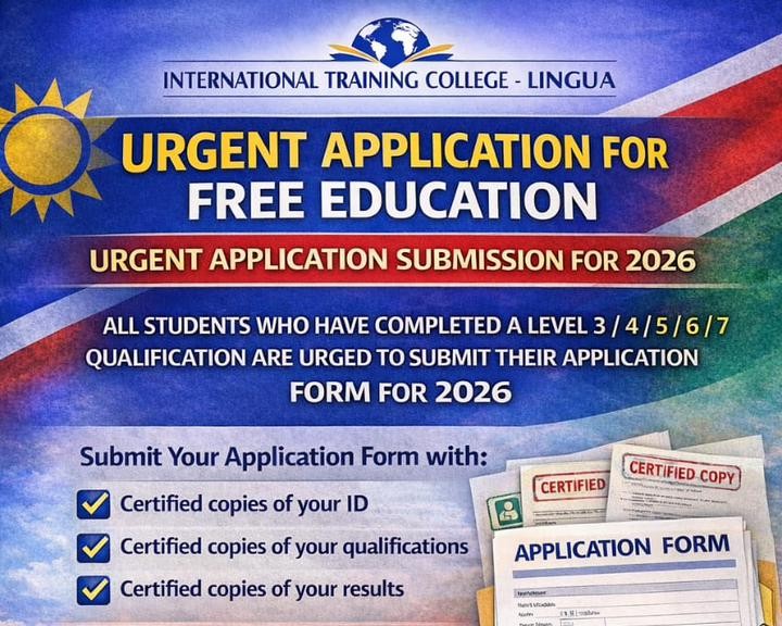At International Training College Lingua, we are proud to support Namibia’s new initiative for free tertiary education, starting in 2026. This exciting program ensures that tuition and registration fees for eligible students at public higher education institutions are fully covered, opening doors for many aspiring learners.